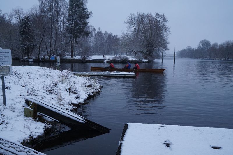 Auch am letzten Tag des Jahres trafen sich Spandauer Friesen, um aufs Wasser zu gehen. Man kann auch bei Schnee rudern, wenn die Bedingungen stimmen.